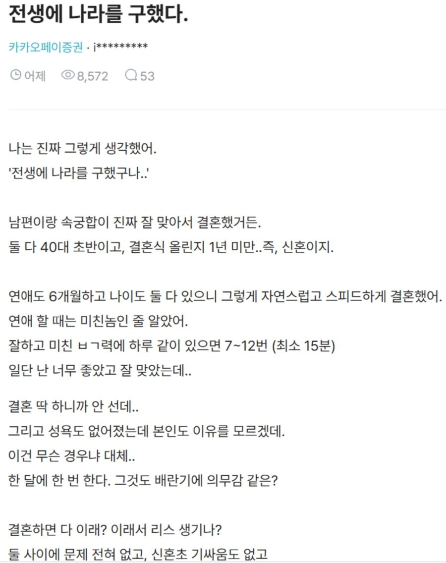 속궁합 잘맞아서 결혼했다는 여자의 고민